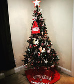 Yet another tree is an homage to my alma mater - Western Kentucky University, complete with our iconic red towel, our loveable, indescribable mascot Big Red, and those familiar white squirrels that would terrorize us on the way to classes. All of these I place in our primary suite. Yes, you didn't just have a minor stroke. I put three Christmas trees in my bedroom.